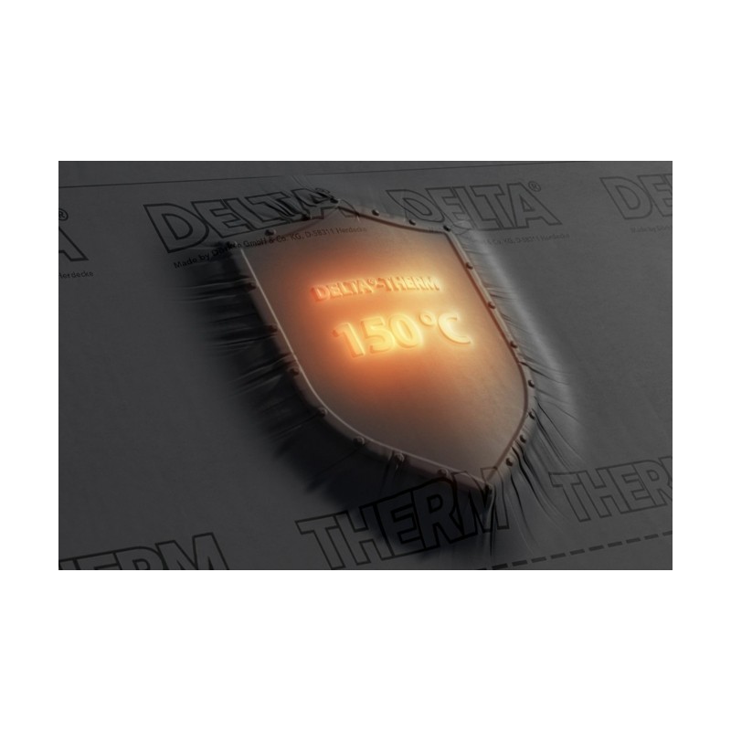 Membrana DELTA- THERM PLUS jest idealnym rozwiązaniem do zastosowania pod metalowymi pokryciami dachu, gdzie termiczne obciążenie membrany wstępnego krycia jest wyższe niż w przypadku tradycyjnych dachówek.