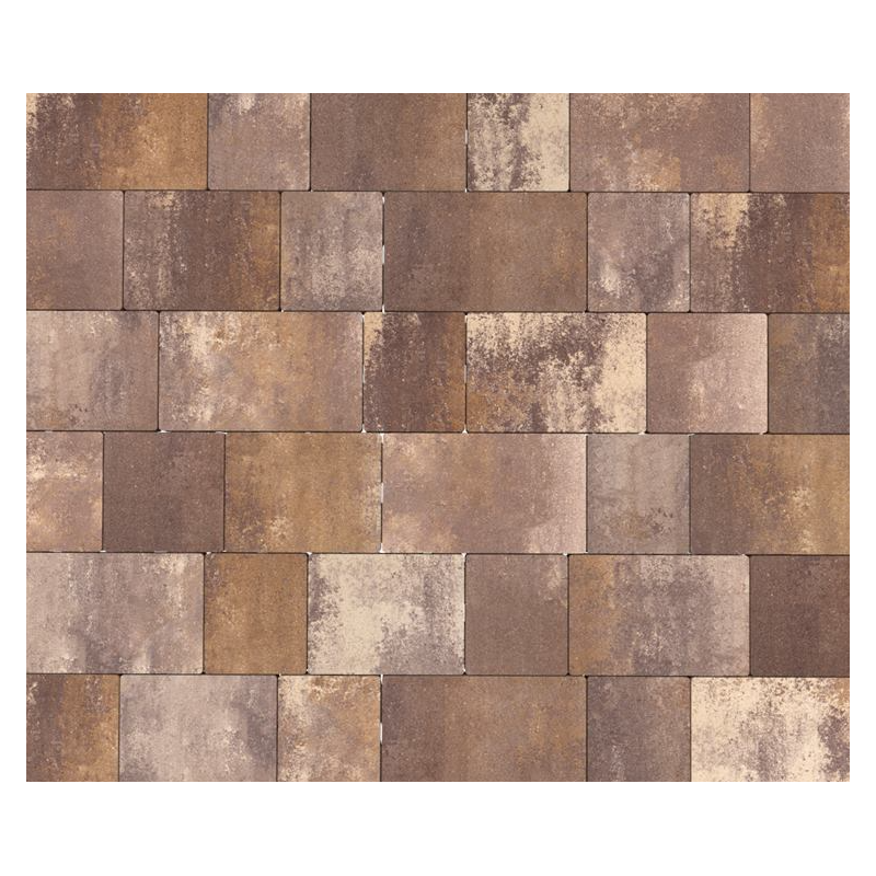 Wzór składający się z 5 elementów pozwala uzyskać ciekawy, harmonijny układ kostki. Bezfazowy charakter i proste brzegi pomagają uzyskać nowoczesną, spokojną optycznie nawierzchnię z delikatnym rysunkiem łączeń. Taki charakter nawierzchni dobrze pasuje do podjazdów, chodników, tarasów i alejek ogrodowych.