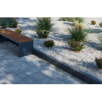 Pozorna fuga oraz mikrofaza nadają obrzeżu nowoczesny, geometryczny charakter. Dzięki temu element dobrze pasuje do współczesnych aranżacji posesji, tarasów, podjazdów i stref zielonych.